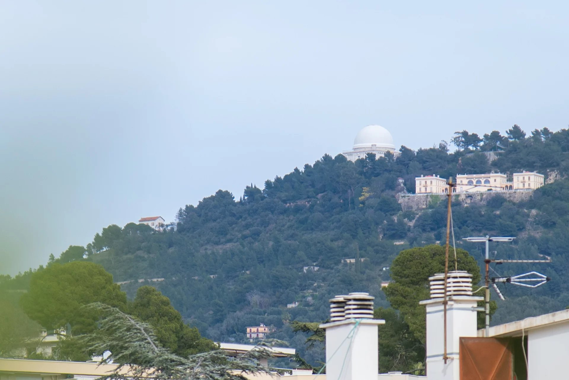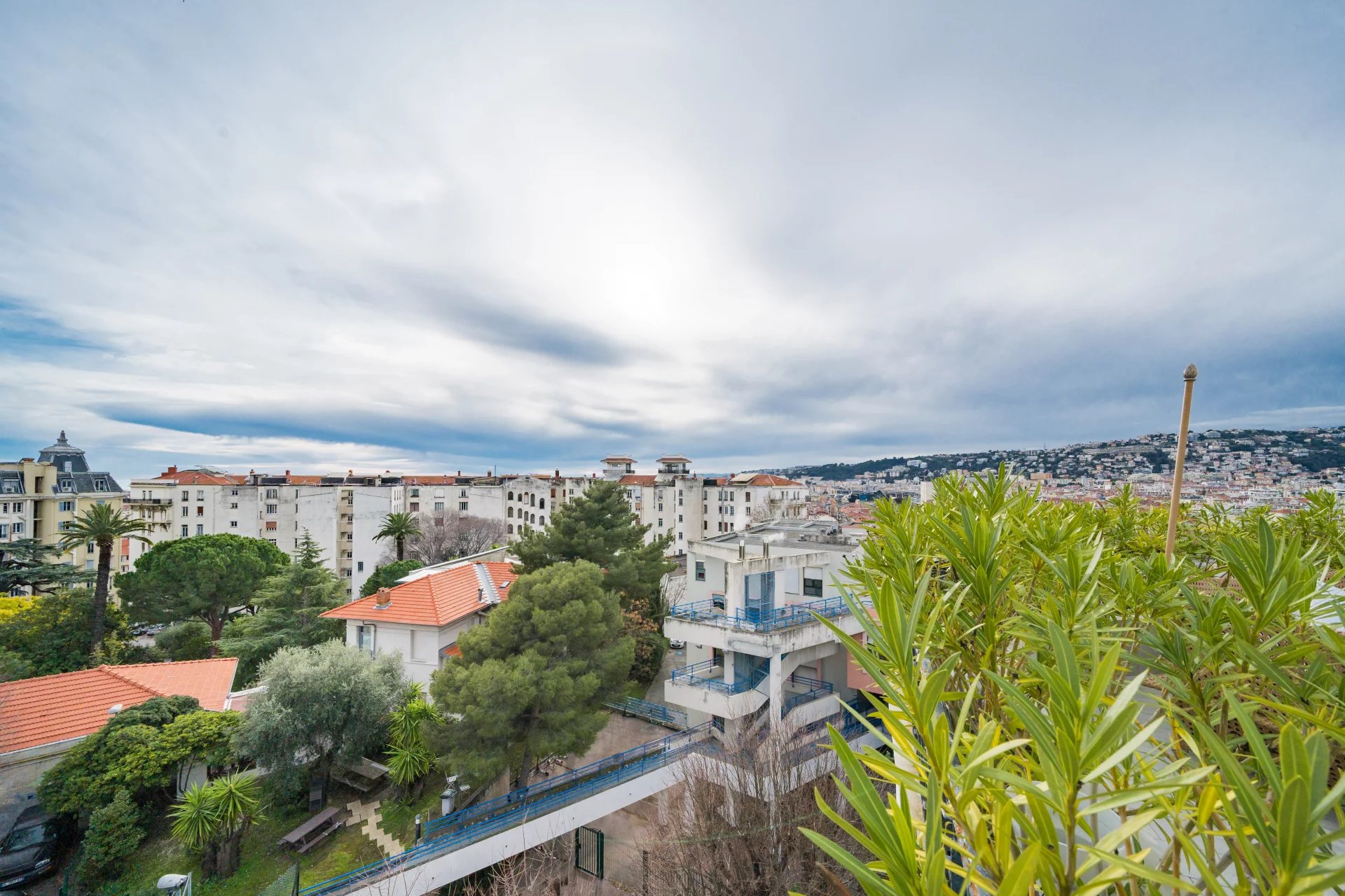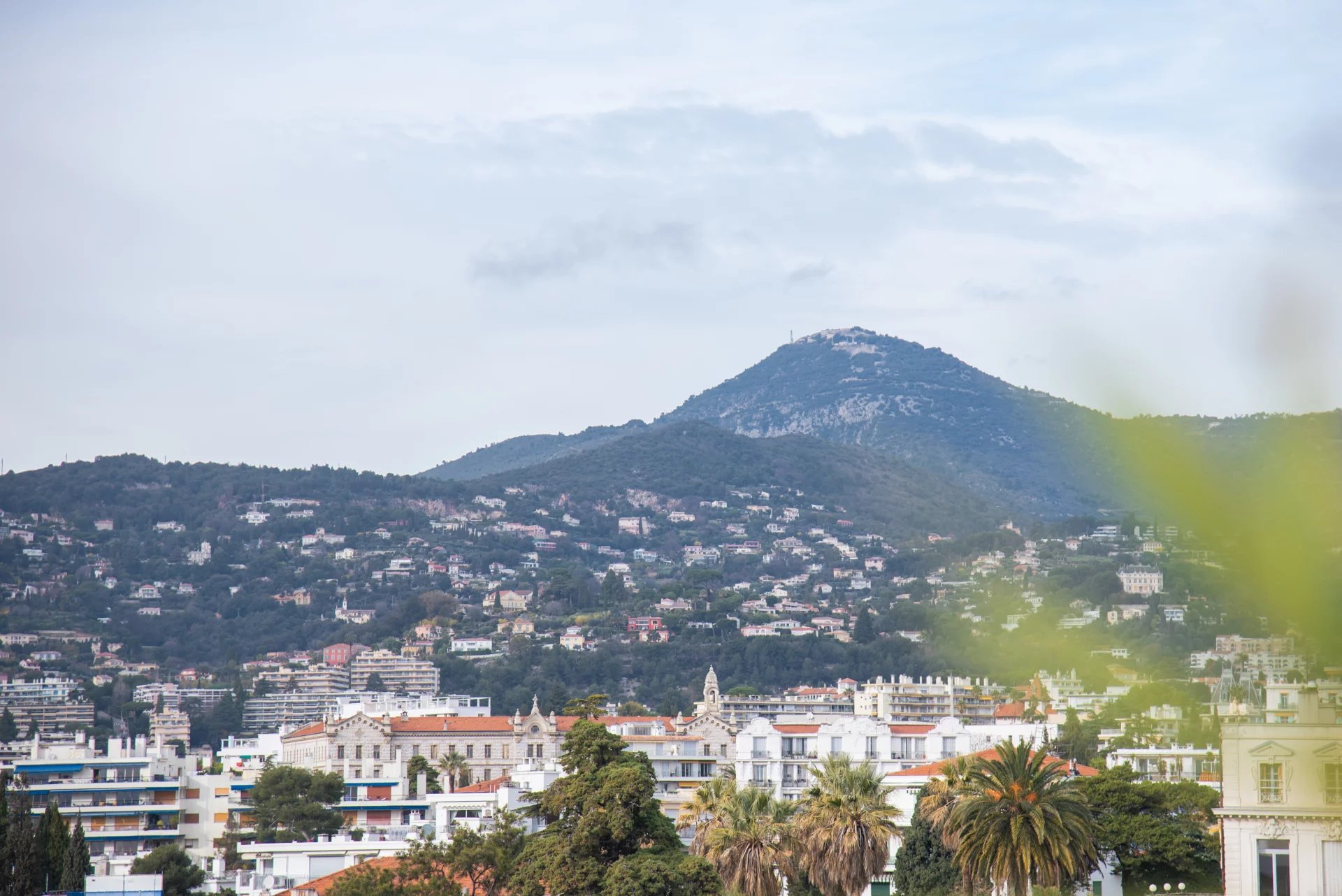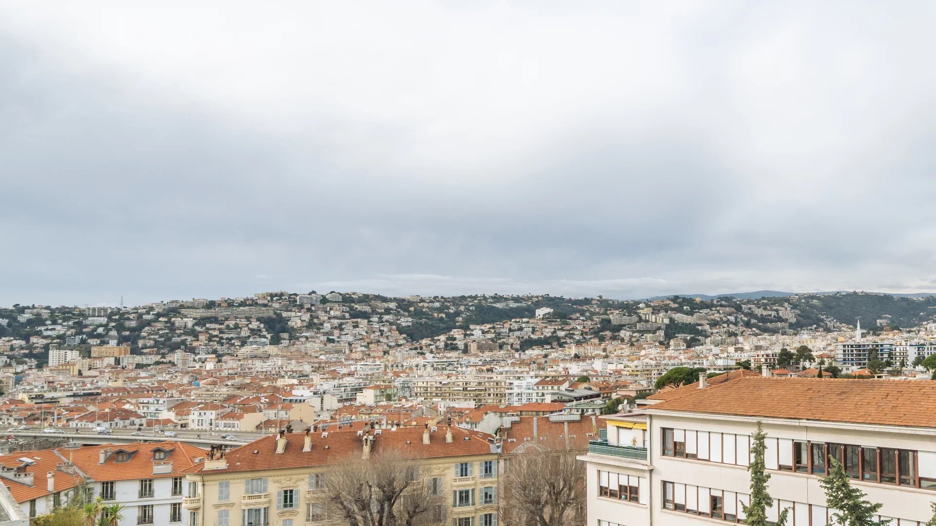 Панорамный вид на город и холмы Ниццы. Немного видно море.