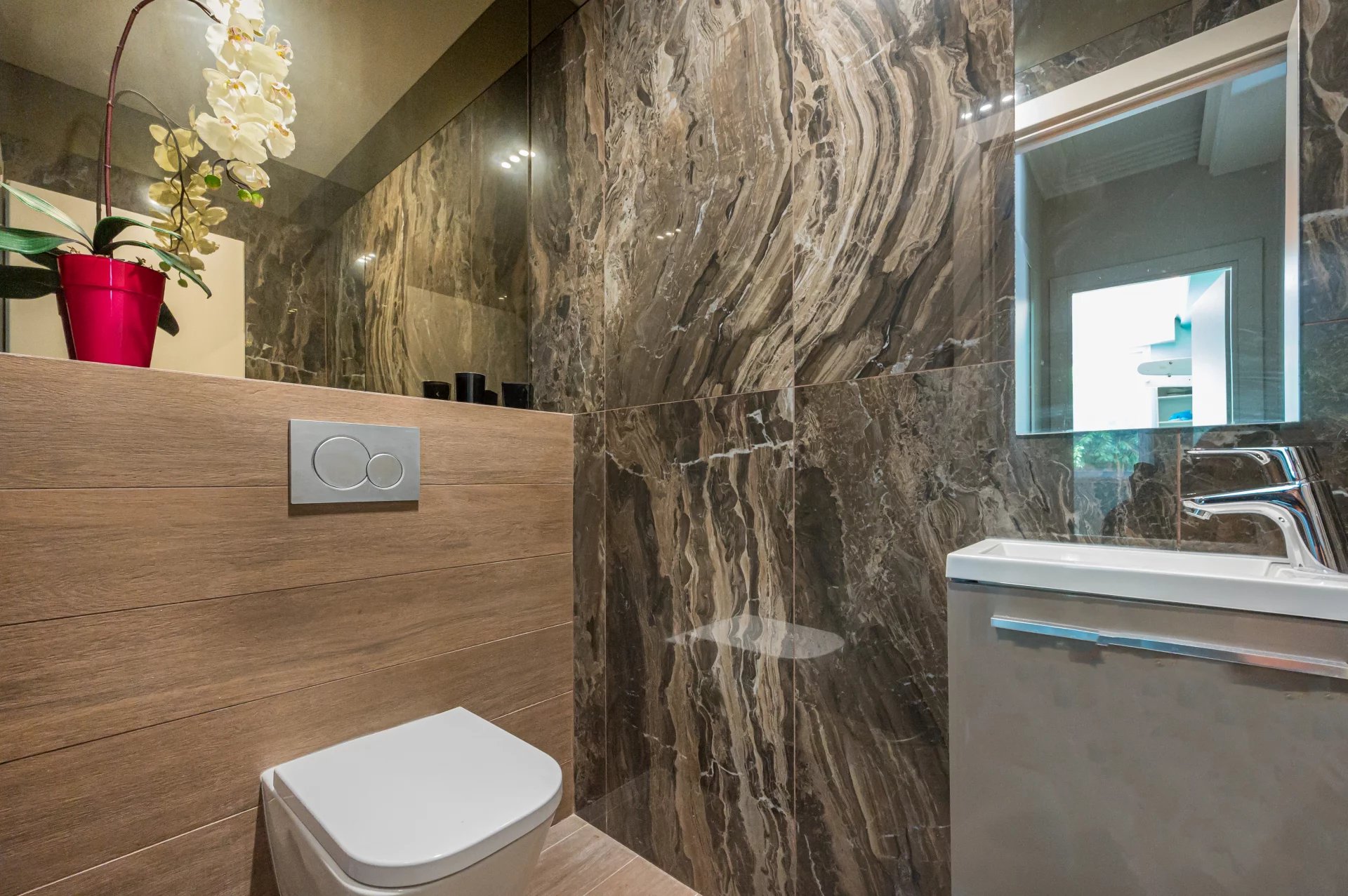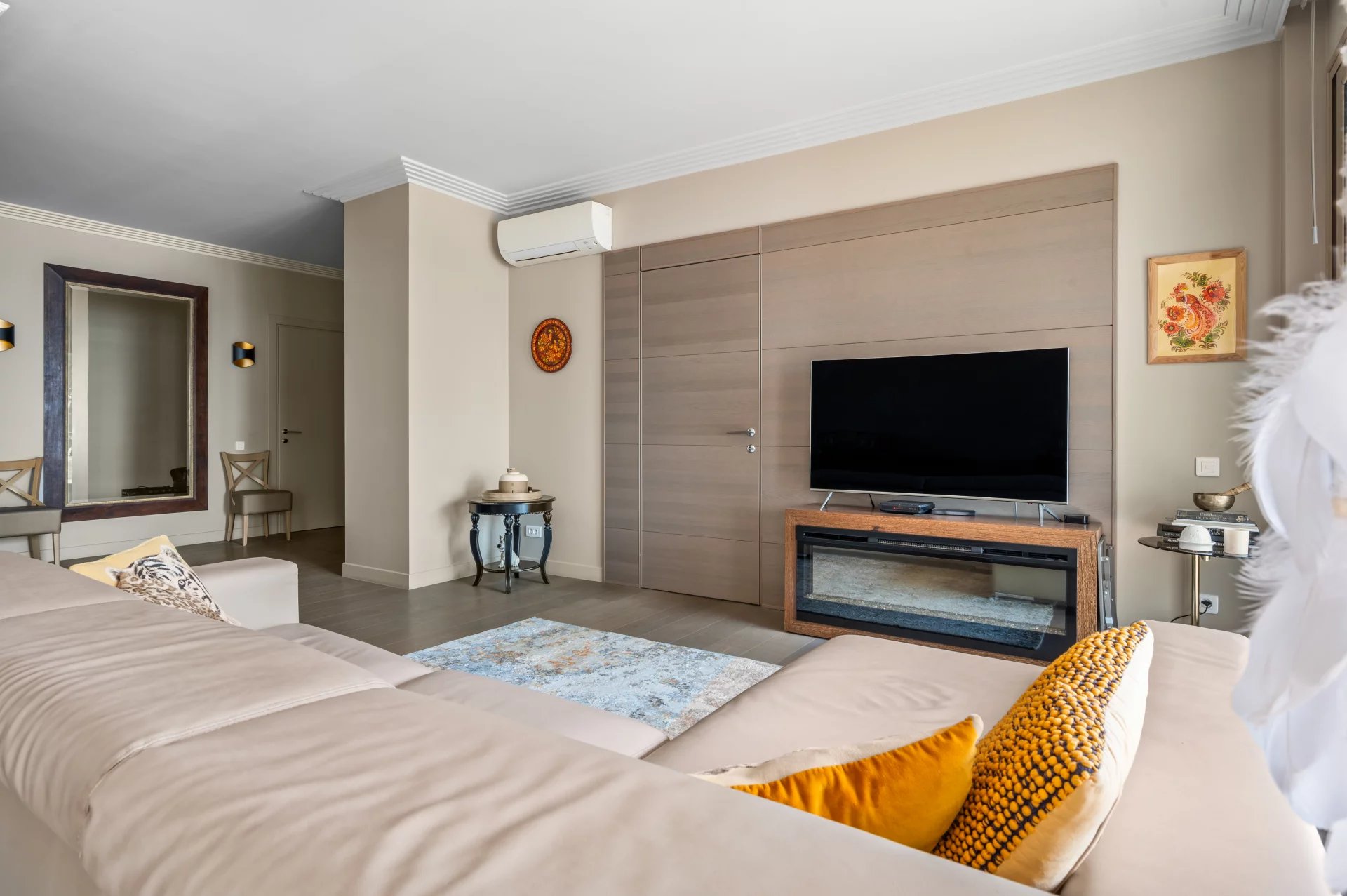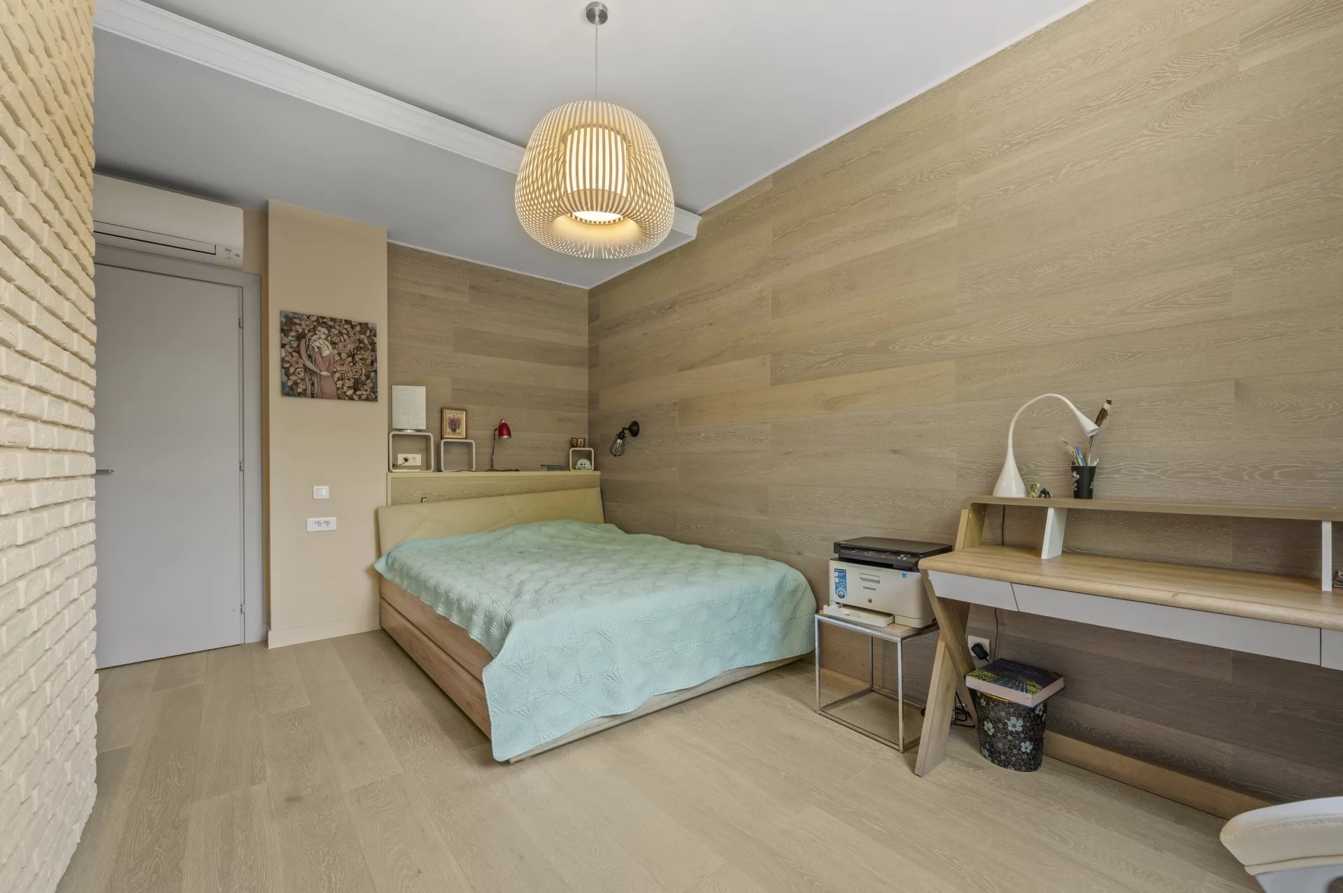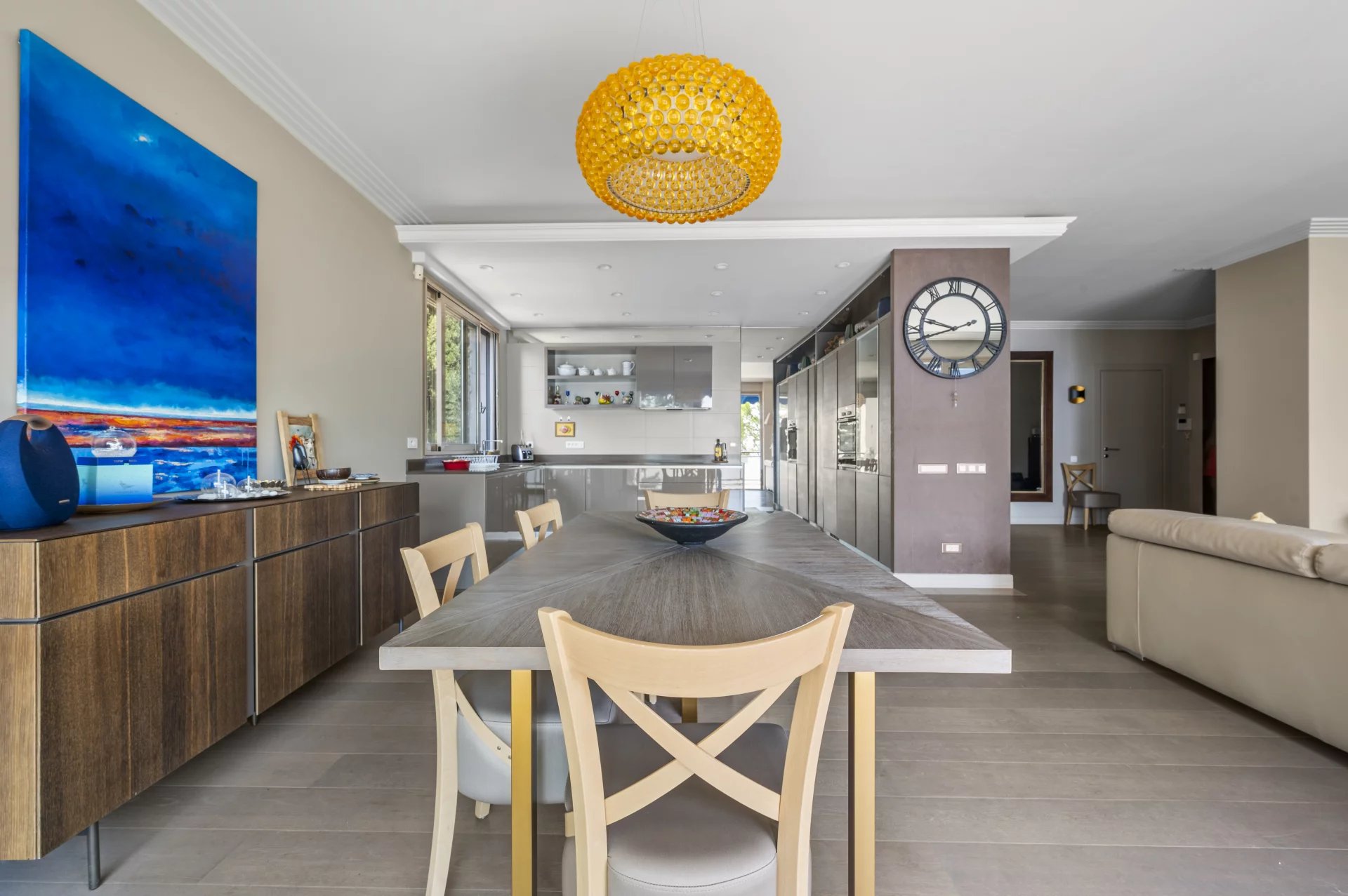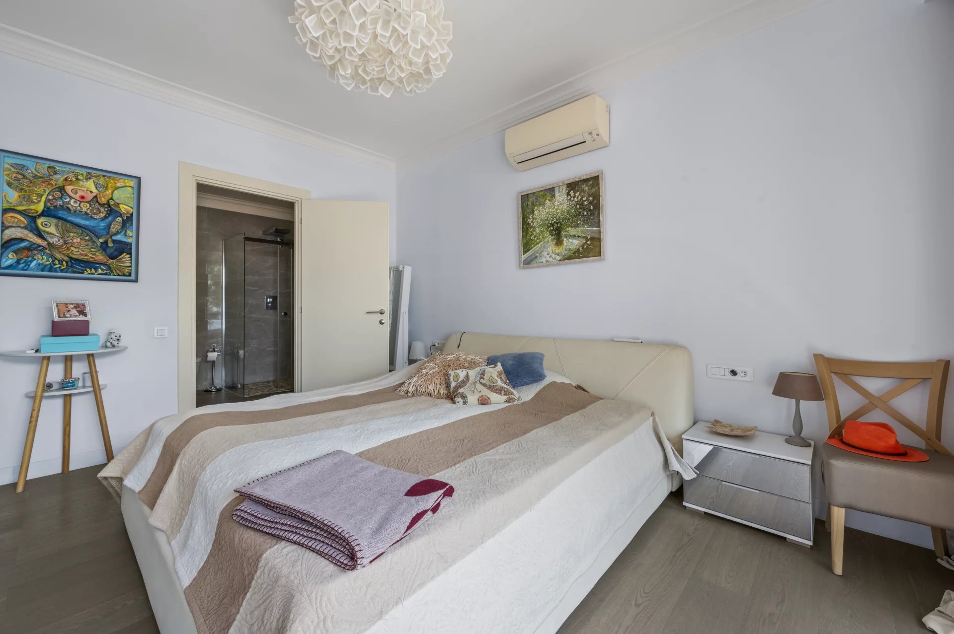 Квартира состоит из большой гостиной, выходящей на террасу с видом на море и средиземноморские сосны, откытой кухни столовой, 3 спален с ванными комнатами, большой гардеробной и прачечной.