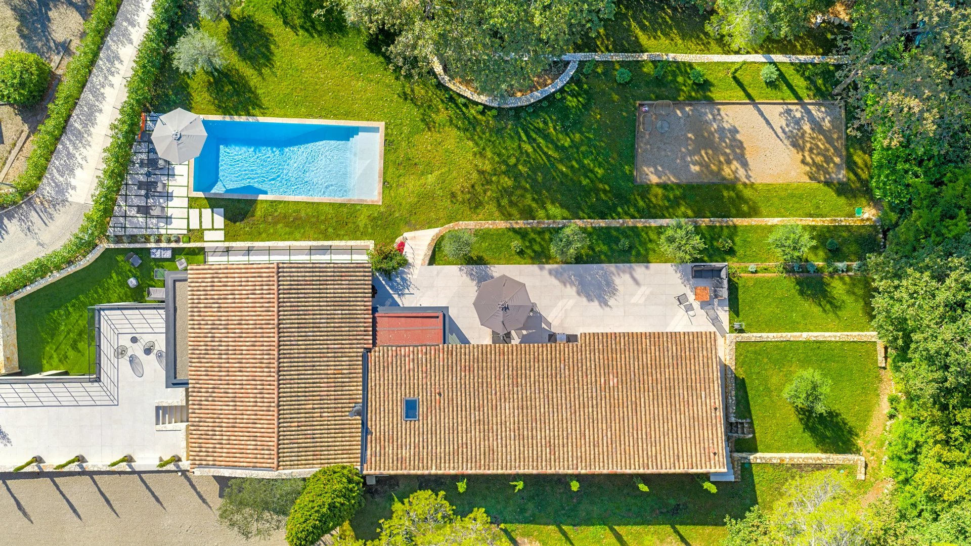 На нижнем уровне , выходящем также в сад, расположены игровая комната, 5- ая спальня с ванной комнатой и сауна с хаммам.