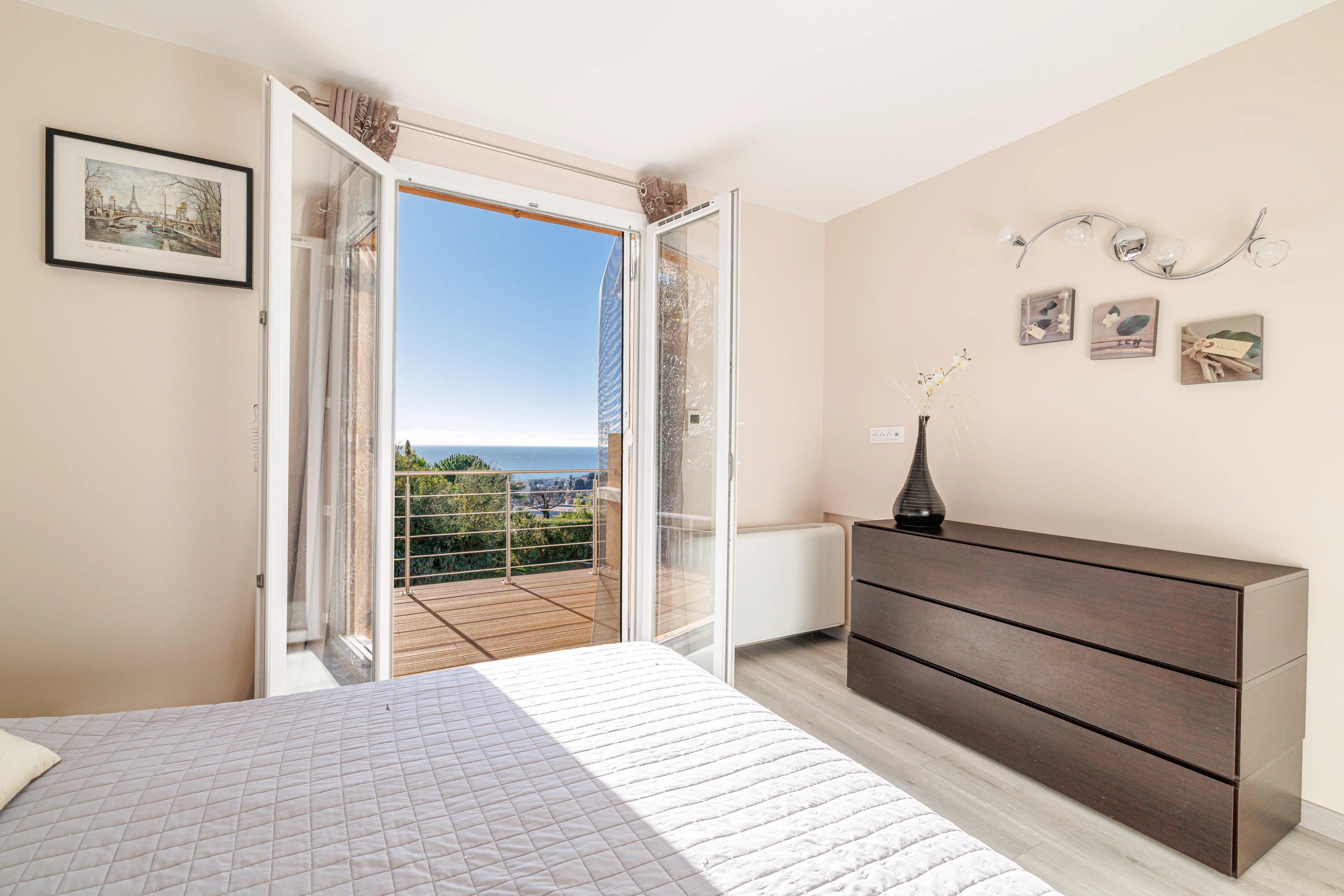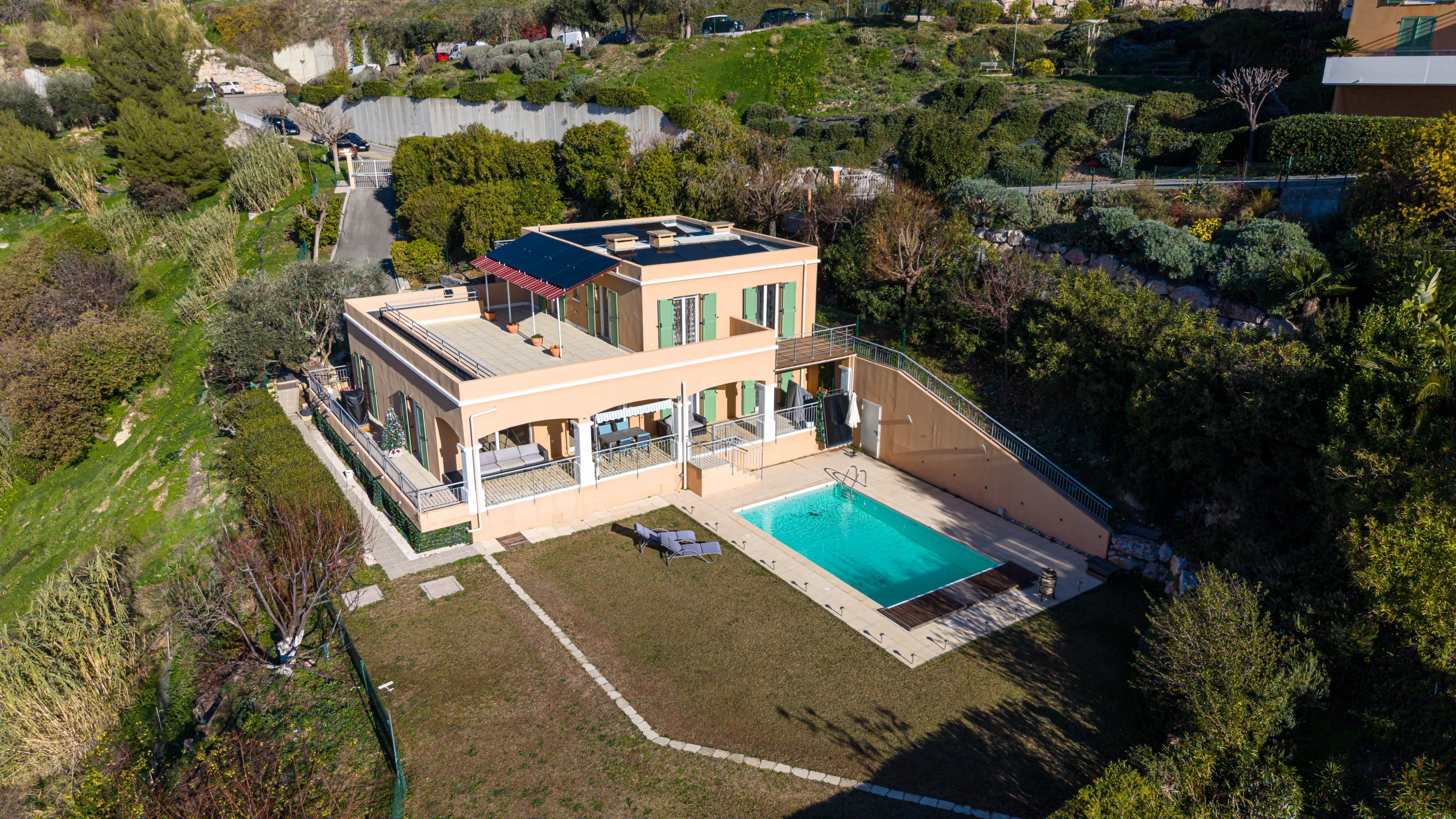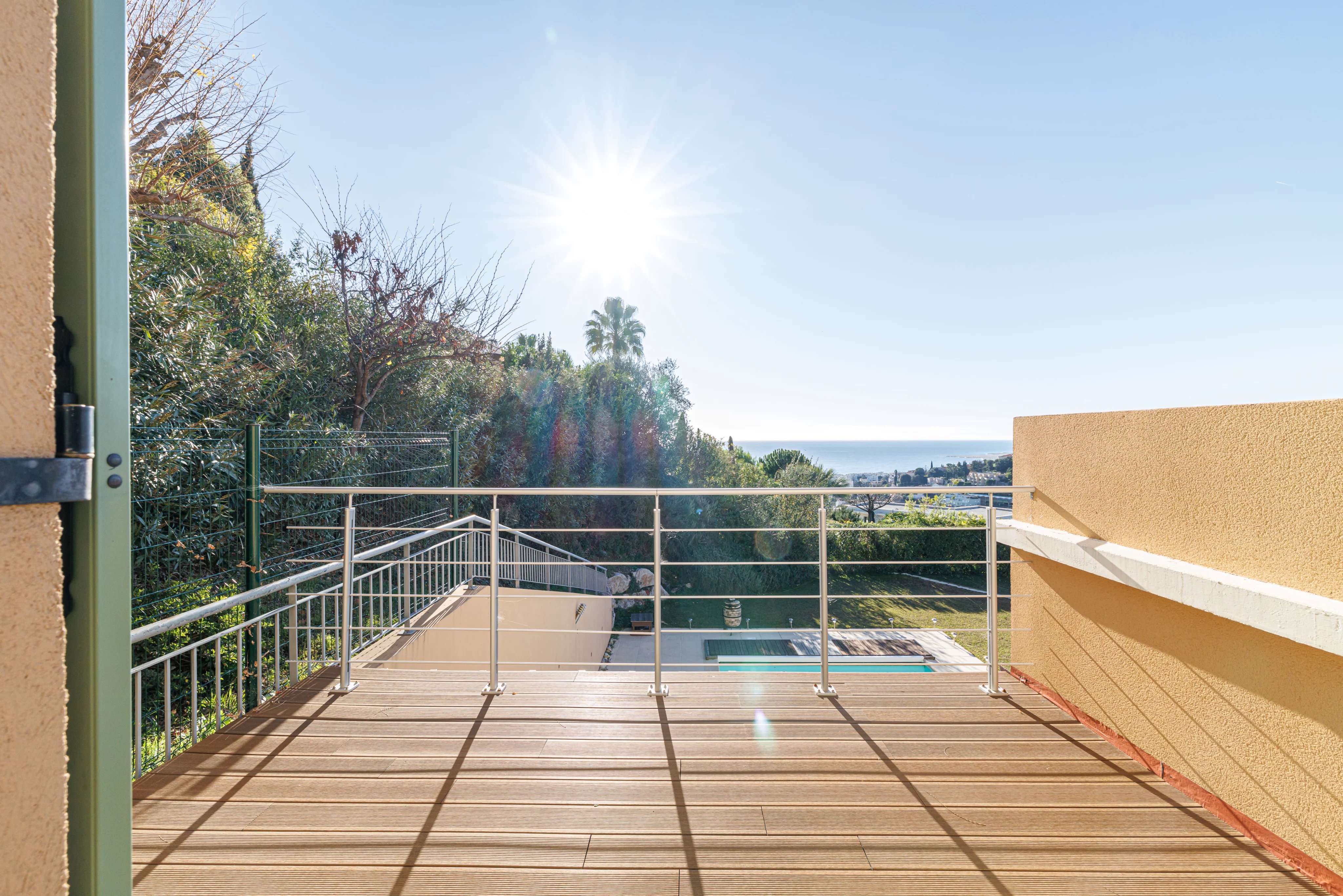 В закрытом домене в 10 минутах езды от центра Ниццы, продается современная вилла с панорамным видом на море.