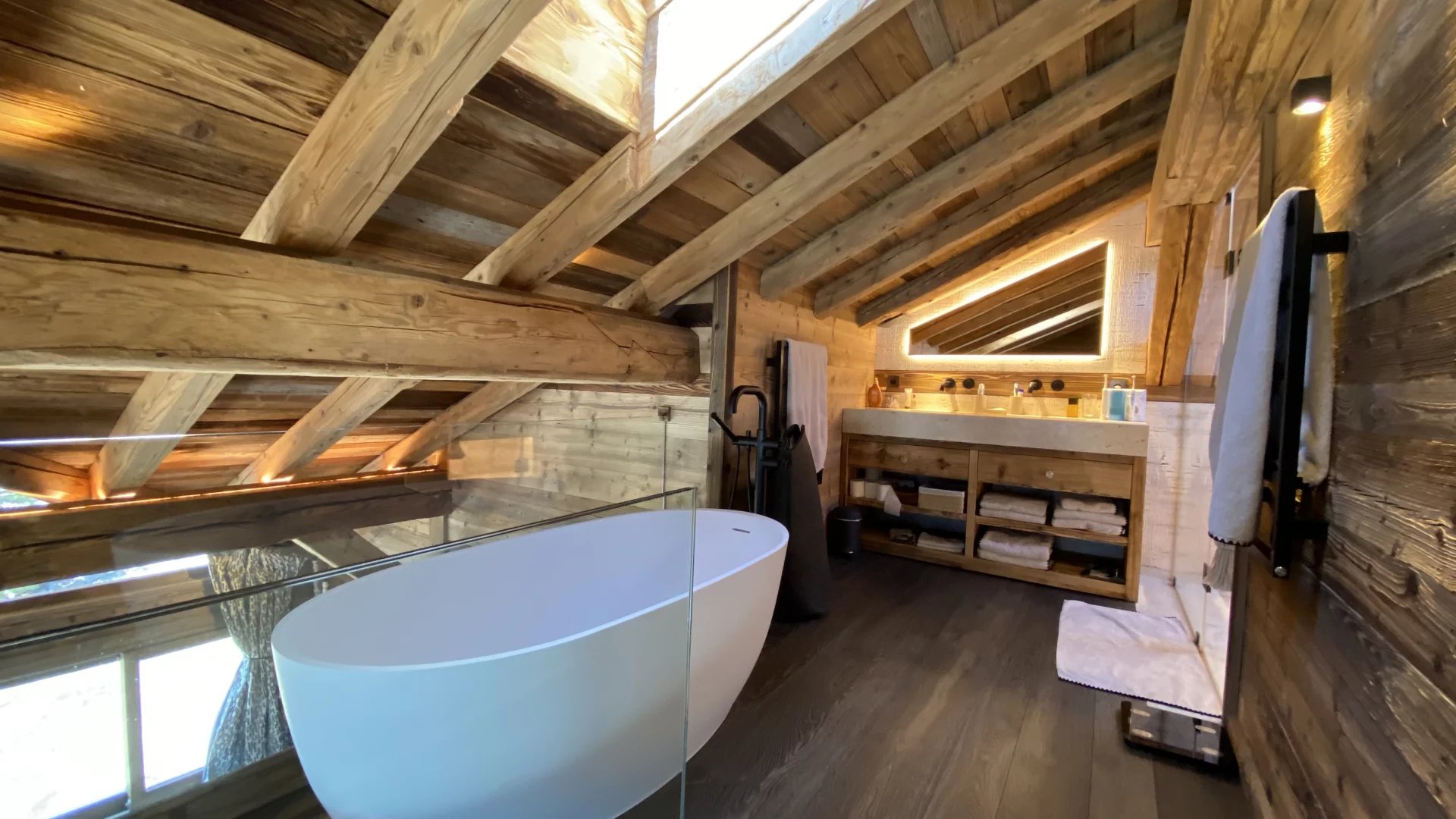 Дом построен в 2019, включает в себя гостиную с двойной высотой потолка и камином, кухню, выходящие на видовые террасы, 4 спальни с ванными комнатами , вторую гостиную и дополнительное пространство 40м2.